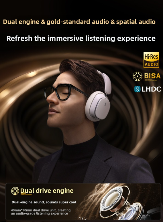 Immerse yourself in Hi-Res Dual Gold audio and -48dB noise reduction for 100hrs continuous listening, backed by Bluetooth 5.3 speed and low-latency performance.