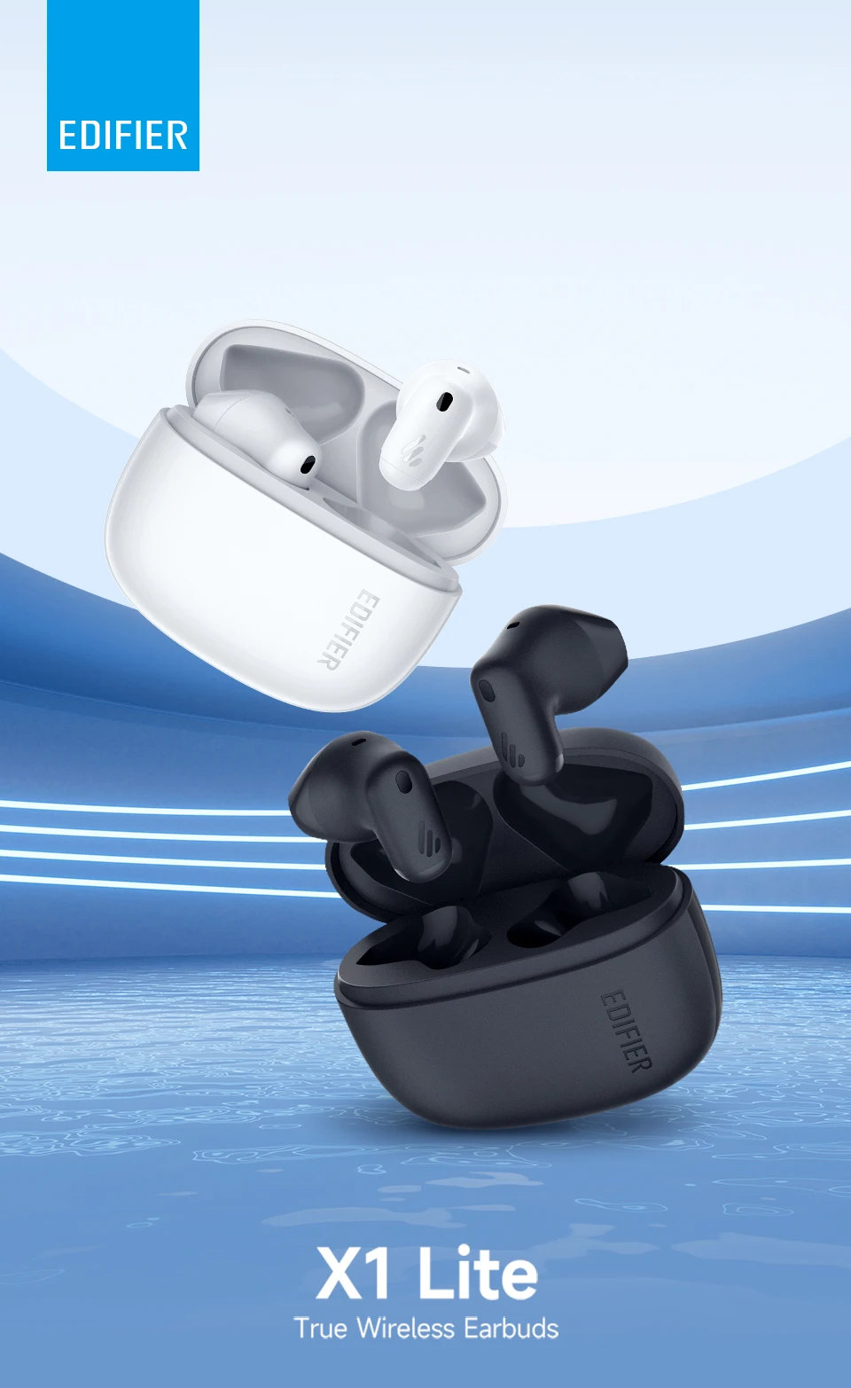 Edifier X1 Lite True Wireless Earbuds – Bluetooth 5.4, 13mm Dynamic Drivers, IP54, 26H Total Playtime, 0.06s Low Latency,
