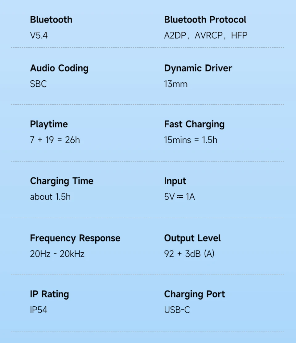 • Bluetooth 5.4: Stable, efficient wireless streaming and pairing.