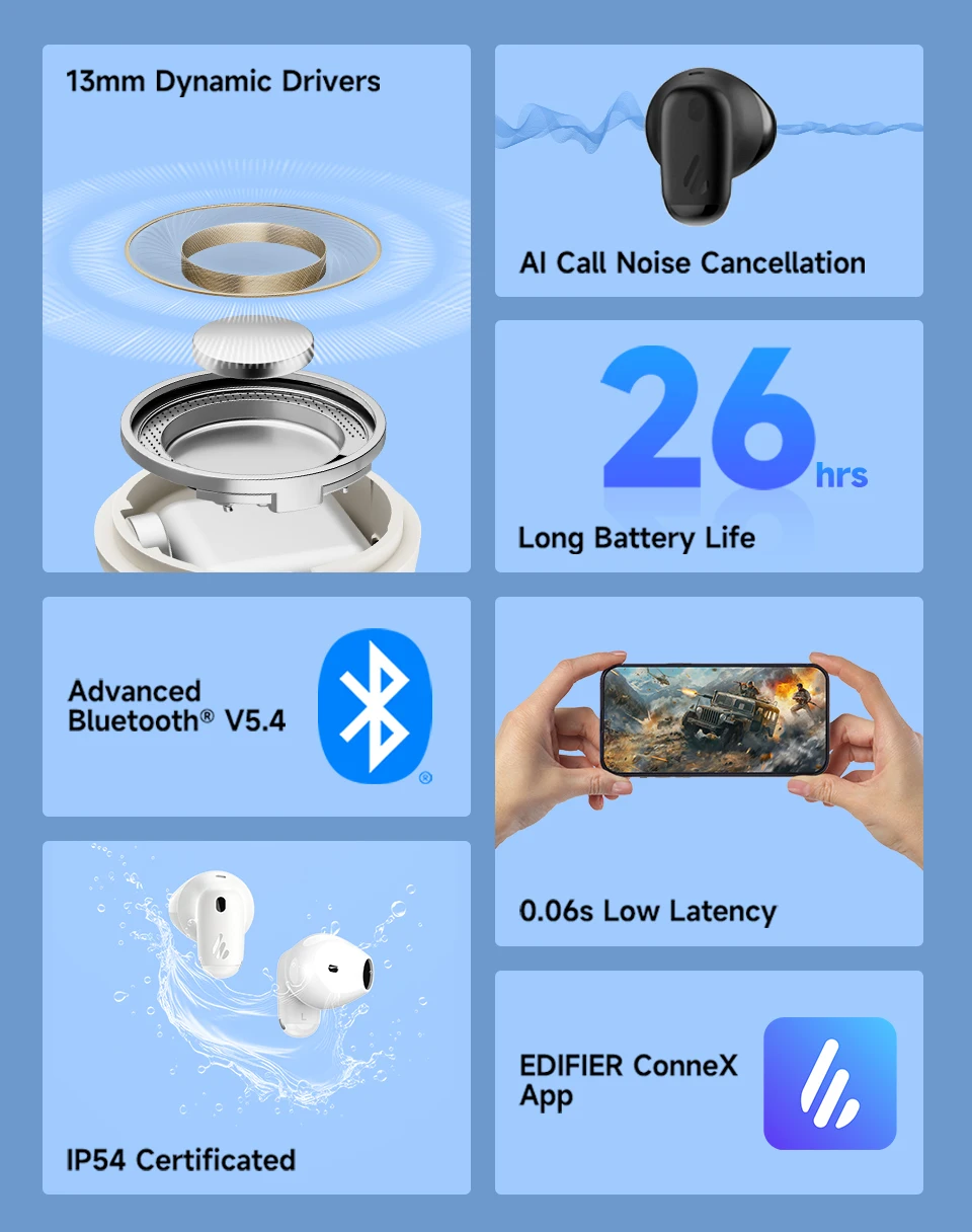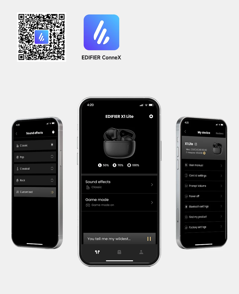 • App Customization: Personalize EQ and controls via EDIFIER ConneX app.
