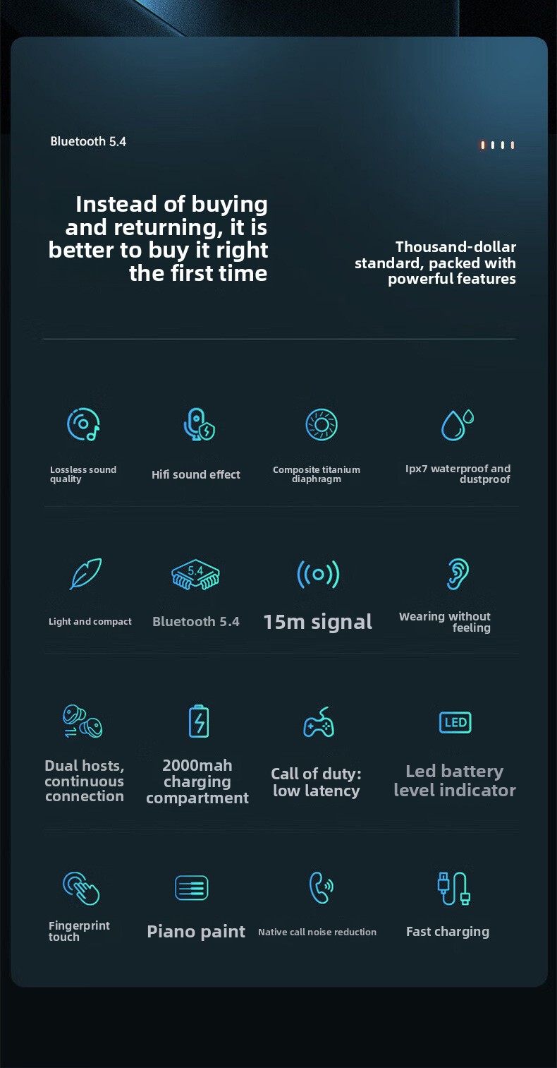 Bluetooth 5.4: Stable wireless connection with low latency for gaming and music
