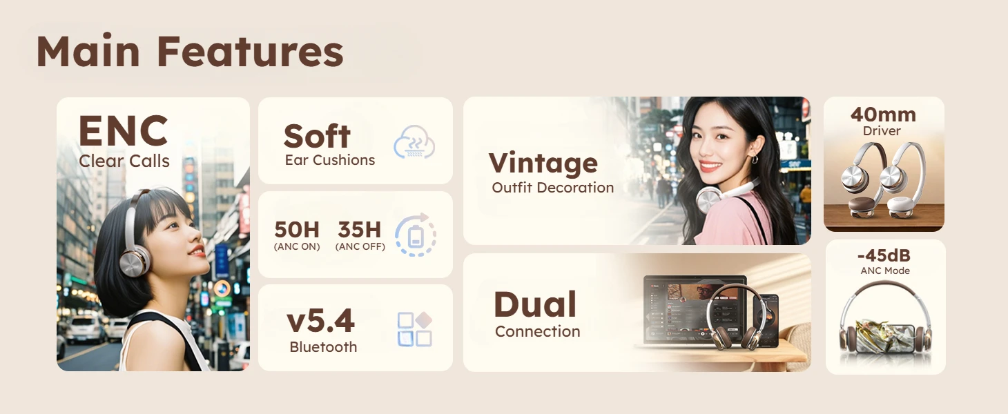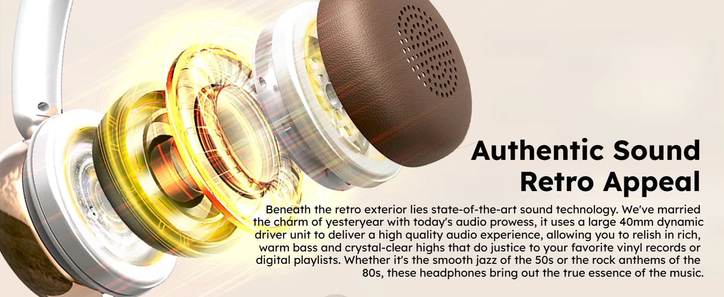 - Retro Meets Modern Audio: Nostalgic vintage design with modern engineering, delivering warm, rich sound through a large 40mm driver.